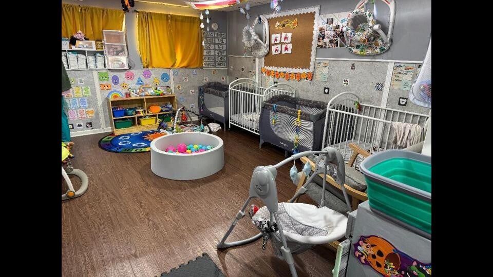 This is our infant room, this is where we have our 6 weeks- 6 months babies. This is Ms. Trinity's room.